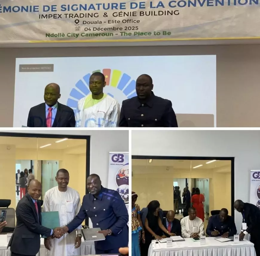Jeudi 04 décembre 2025 à Douala, l’échange des parapheurs entre le coordonnateur de World Dream Investment (WDI), le directeur de Génie Building et Junior Abraham Ngosso, promoteur de Ndollè City, a déclenché un tonnerre d’applaudissements. Sous le crépitement des flashs, une convention historique lie désormais Impex Trading à l’entreprise camerounaise Génie Building pour un montant de 300 milliards de FCFA.
